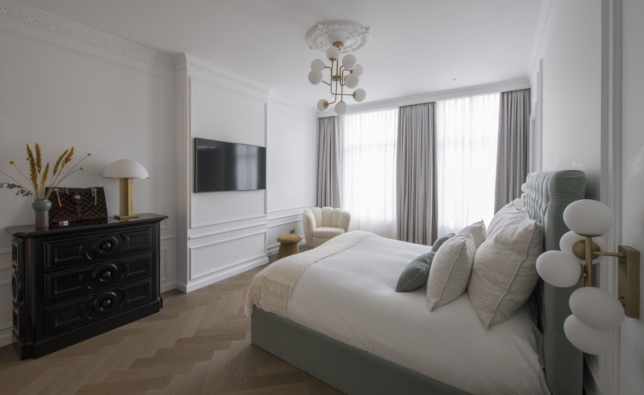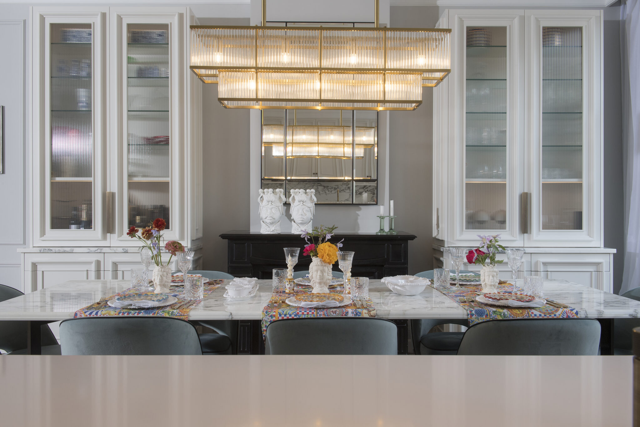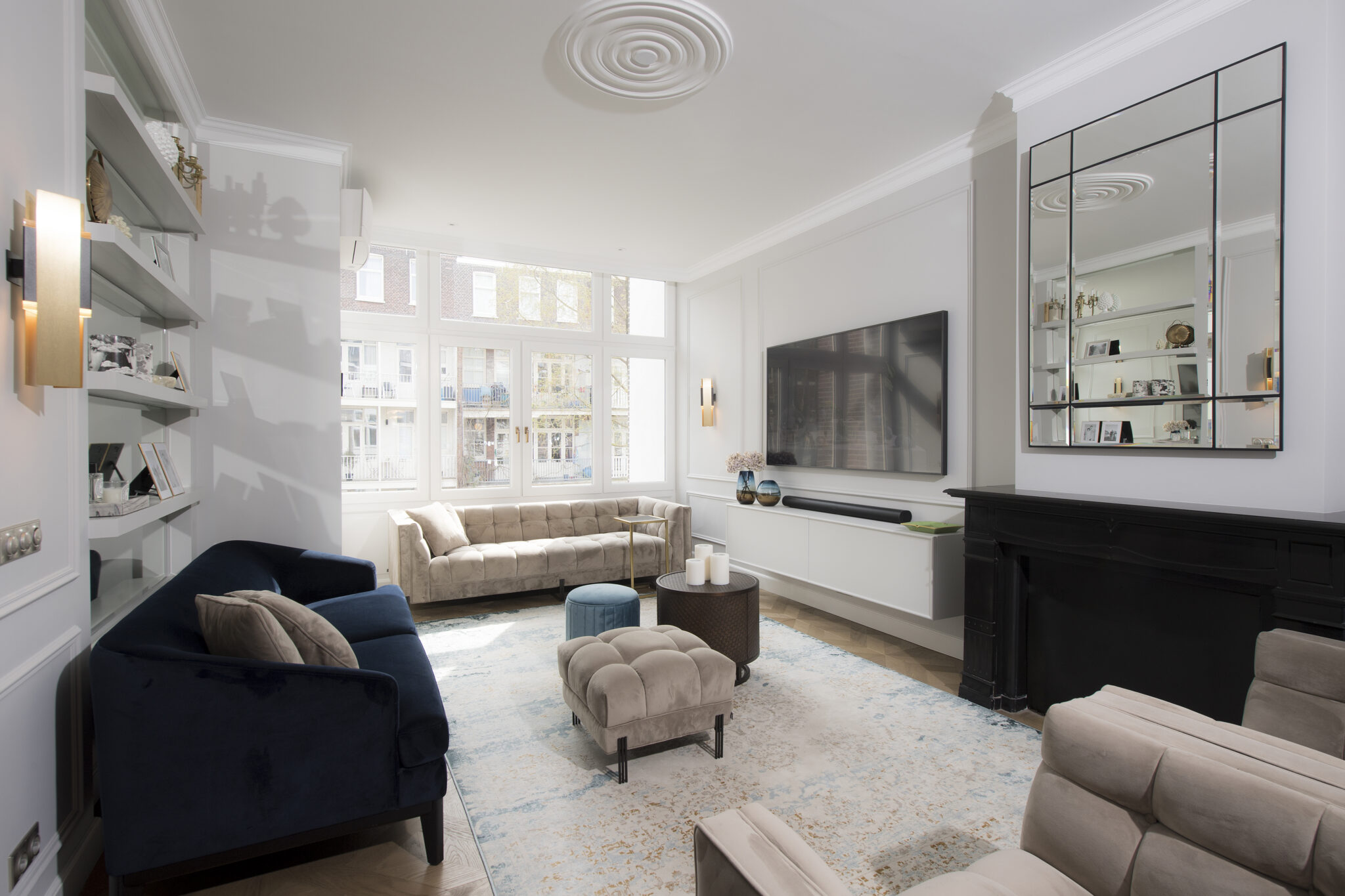 De familie heeft Engelse, Duitse en Russische roots, maar waardeert de Nederlandse charme enorm en ziet Nederland ook als hun thuis. Dat gevoel van diversiteit wilden zij graag terugzien in hun familiewoning en over elk detail is nagedacht. De klant is veel onderweg en thuis moet rust geven en opgeruimd zijn. Vandaar dat er veel slimme bergruimte is gecreeërd in het maatwerk in elke ruimte.